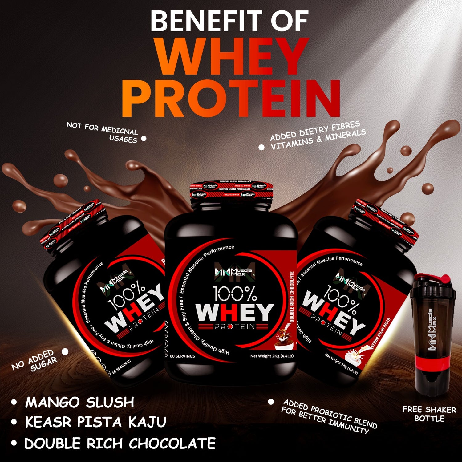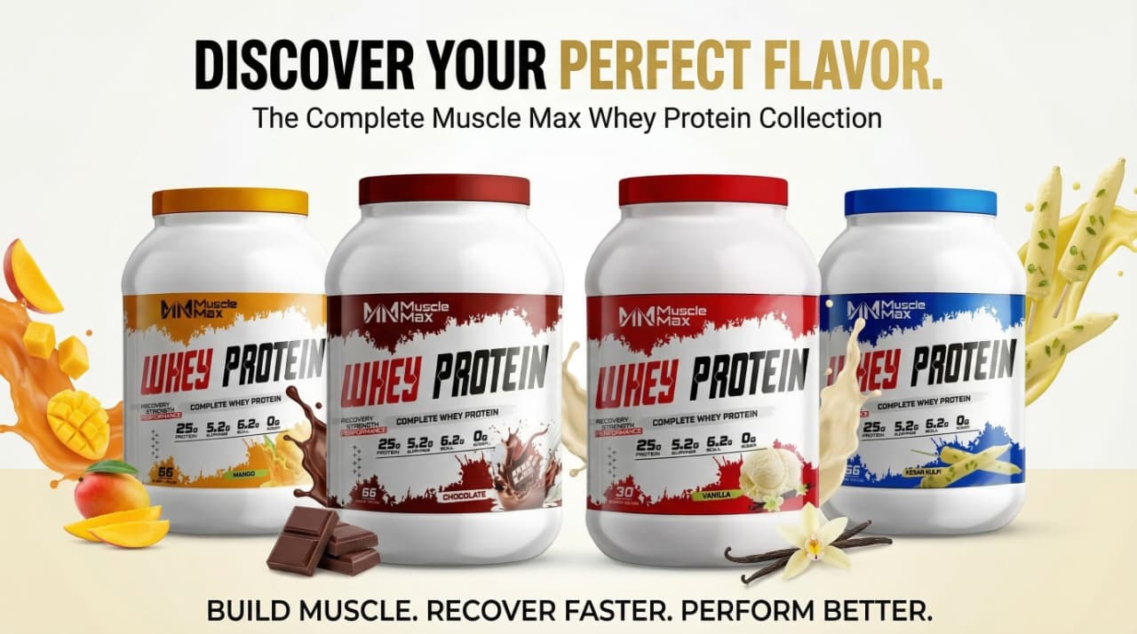 Muscle Max Nutrition Whey Protein is an advanced and powerful supplement designed to support rapid weight gain and lean muscle growth. Formulated to enhance muscle protein synthesis and prevent post-workout muscle breakdown, it ensures optimal recovery and performance. Each serving delivers 25 grams of high-quality protein and 6.2 grams of BCAAs, fueling your body for faster gains. Enriched with digestive enzymes, it promotes efficient nutrient absorption and smooth digestion — helping you get the most out of every scoop.