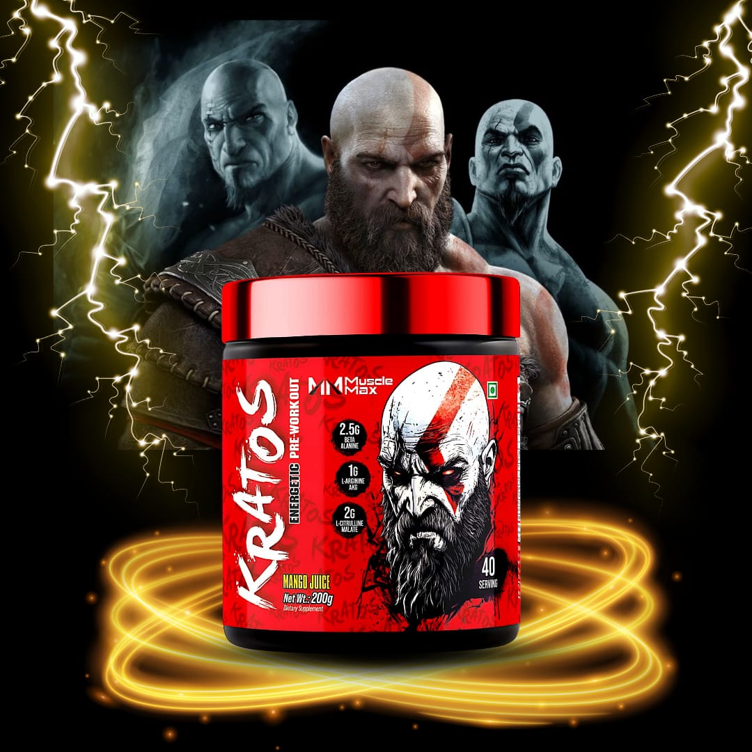 Step into beast mode with KRATOS, the ultimate energized pre-workout by Muscle Max. Designed for serious athletes and lifters, KRATOS delivers explosive energy, razor-sharp focus, and unmatched endurance to dominate every rep, every set, every session.